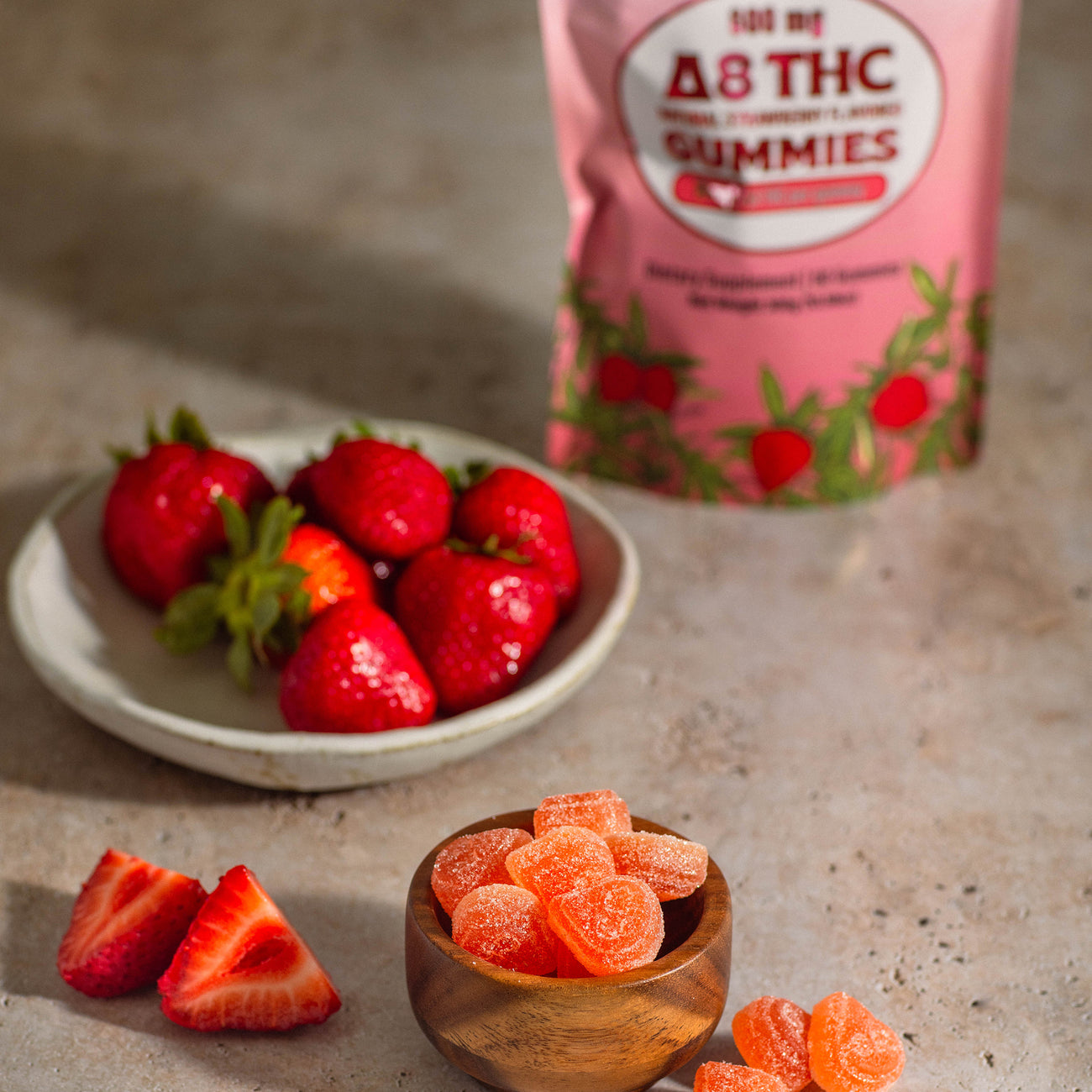 Crafted in small batches with care, our gummies feature a natural strawberry flavor, are free from artificial ingredients and gluten, and come in child-resistant packaging for peace of mind.