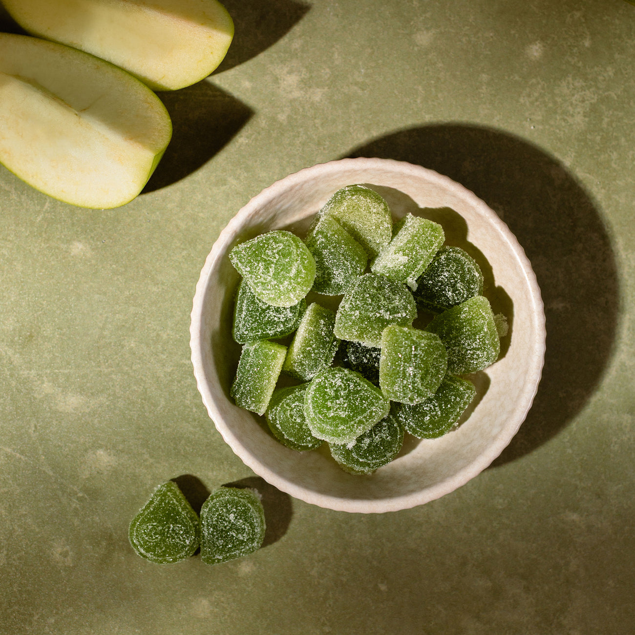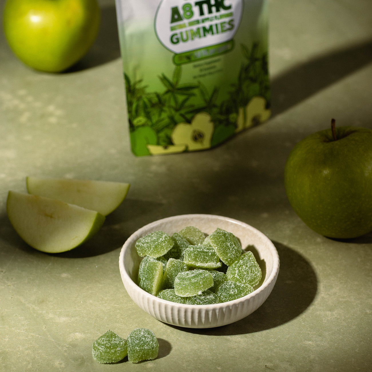 Crafted in small batches with natural green apple flavor, our gummies are free from gluten and artificial ingredients.